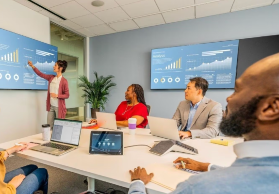 Aumente a produtividade: compartilhe telas, edite documentos em equipe com nossas soluções completas com equipamentos de alta resolução e faça reuniões mais envolventes e eficazes.